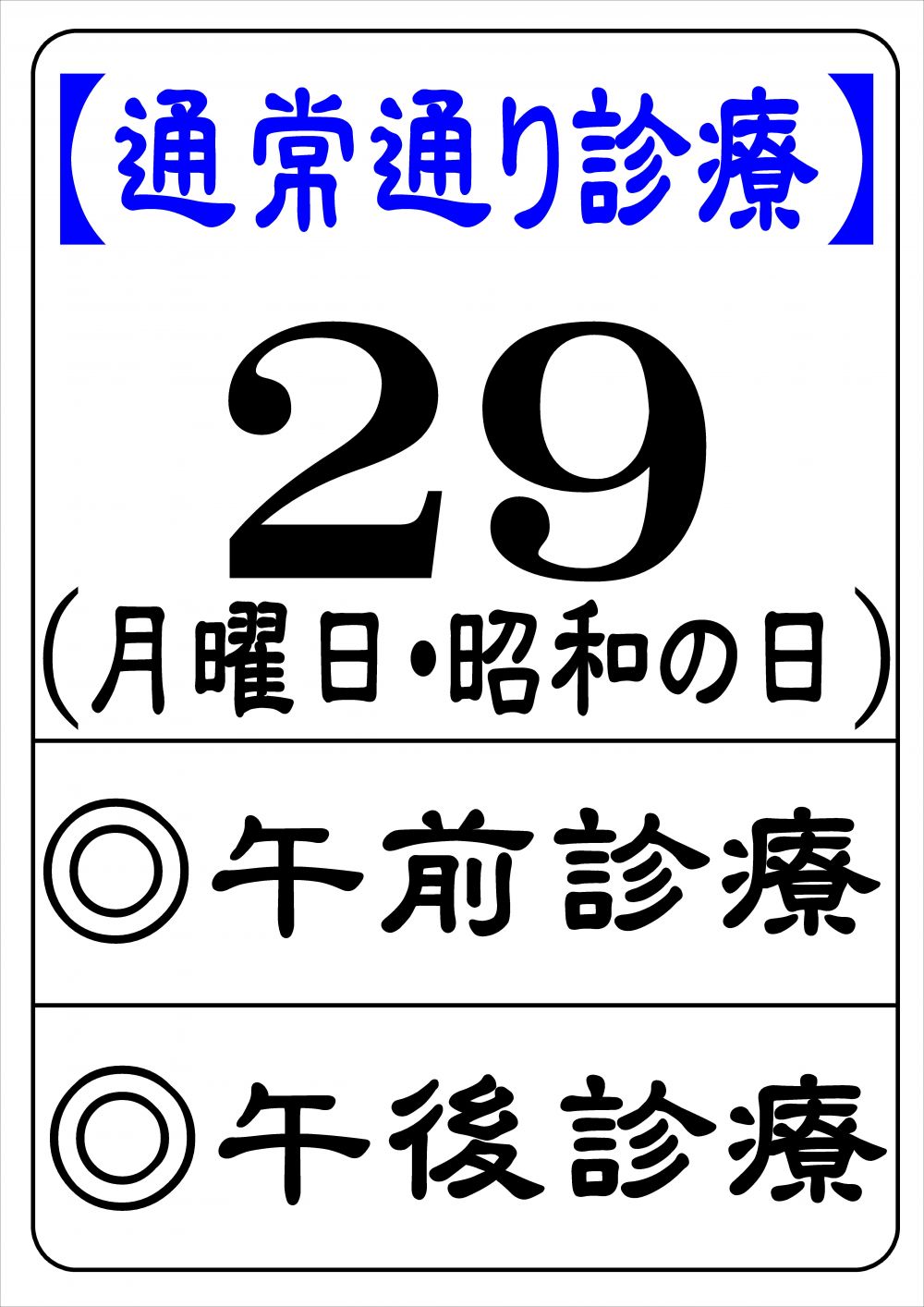 ☆2024【令和6年】4/29(月)昭和の日⇒午前の部、午後の部ともに通常通り診療致します。