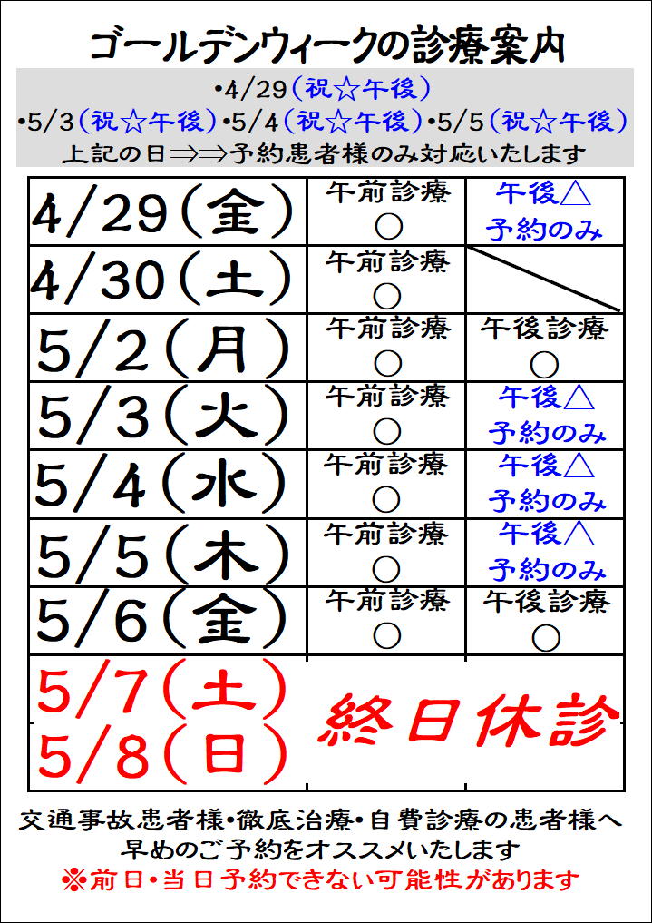 半田市たのうえ接骨院、院長の田之上哲人です。2024.05.20月曜日、終日休診いたします。